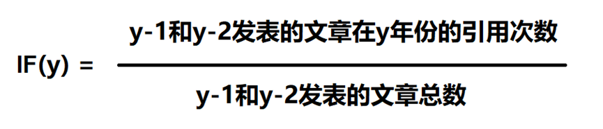 影响因子的计算方法是:某期刊前两年发表的论文在报告年份(JCR year)中被引用总次数除以该期刊在这两年内发表的论文总数,公式表示如下: